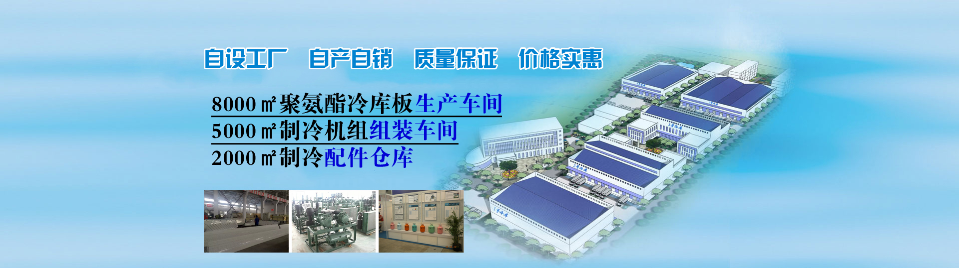 自設(shè)8000平方聚氨酯生產(chǎn)車間、5000平方制冷機(jī)組組裝車間真正做到自產(chǎn)自銷、讓利客戶。
